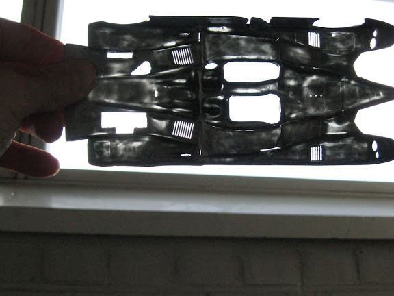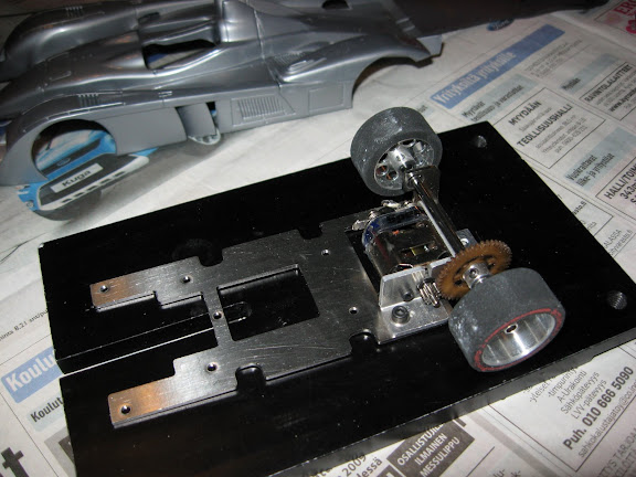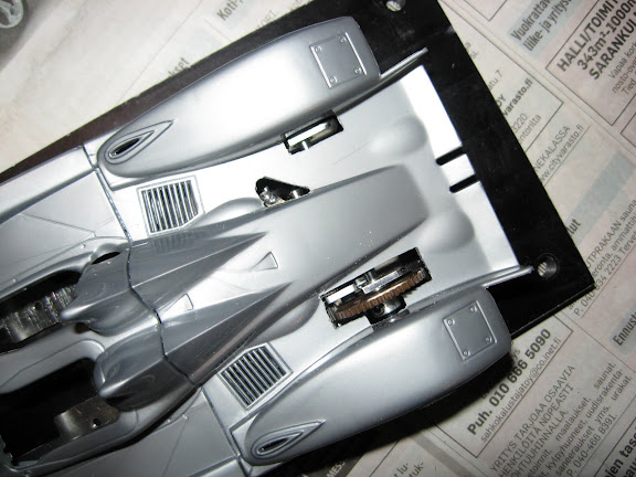 Törmäsin tähän seikaan sovitellessani Revellin Audi-rakennussarjan koria MoMon X-SW GT-alustan päälle. Tilaa ei yksinkertaisesti ole. Seurauksena tästä se, että koria on pakko leikata kriittisistä kohdin ja tehdä näiden aukkojen päälle myöhemmin sopivat "katteet":