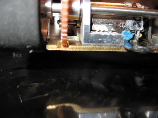 Tiistai-iltana oli vuorossa rungon leikkaus. Eli rälläkkä käteen ja messinkilevystä sopiva pala. "Hienotyöstön" tein puolestaan dremelillä ja leikkuulaikalla. Pohjalevyn ja moottoripodin leikkaamiseen meni aikaa n. 3 tuntia.