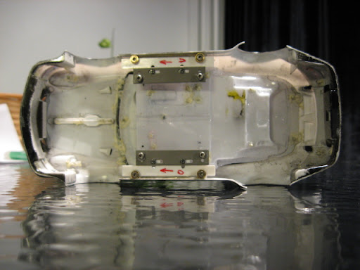 - Laakeripukkien ja rungon väliin tehty hiilikuitulevystä shimmilevyt maavaran säätämiseksi. Edessä n. 0,4 mm ja takana n. 0,3 mm. Maavara jäi näillä hieman korkeaksi ole jotain 1,9 mm +.