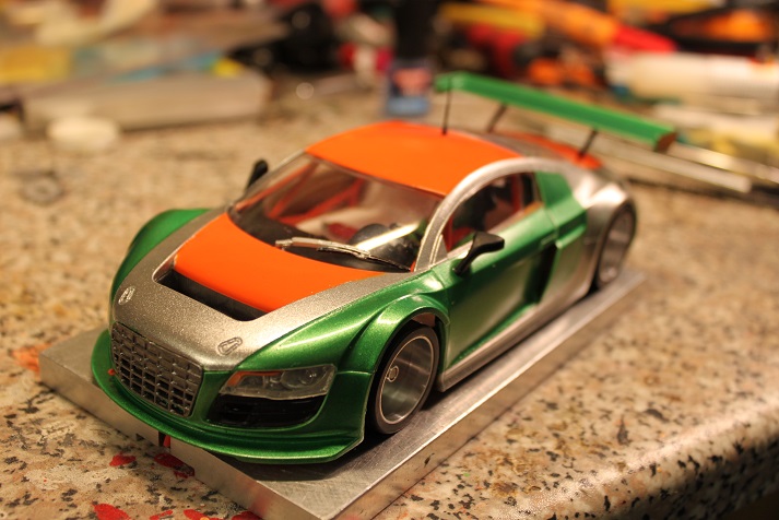 nyt olisi Scaleauton whitekit kori paketissa, maalattu ja liimattu niin penteleesti. Saksasta Audin tehtaalta on tulon päällä uusi takasiipi, kuvassa oleva on vain mallin vuoksi paikalla.