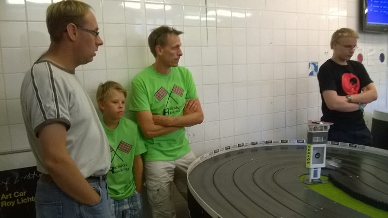 Radan pintaan oli jäänyt "rasvaisia" renkaanjälkiä sinne tänne, selkeästi kaatojen jälkeisiä kiihdytysraitoja ja epäilenkin, notta laakeriöljyä oli lutrattu joihinkin autoihin reilunpuoleisesti ja sitä oli siis pärskitty ympäri rataa. Nuista suddailujäljistä jäi sormiinkin öljyinen pinta, kun rataa pyyhki kädellä.