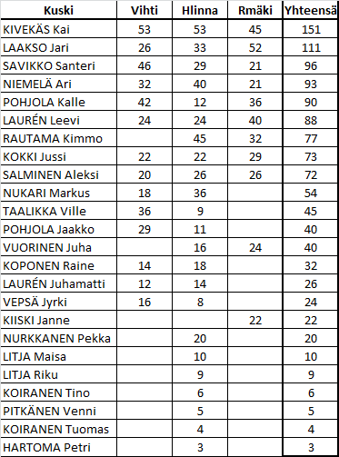 FSC T kilvanajossa pisteet jakaantuivat kuitenkin näin: