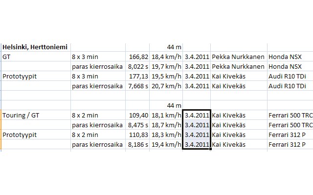 GT/P Proto aika-ajo 1 x 1min. yksitellen, aika-ajoura neljä
