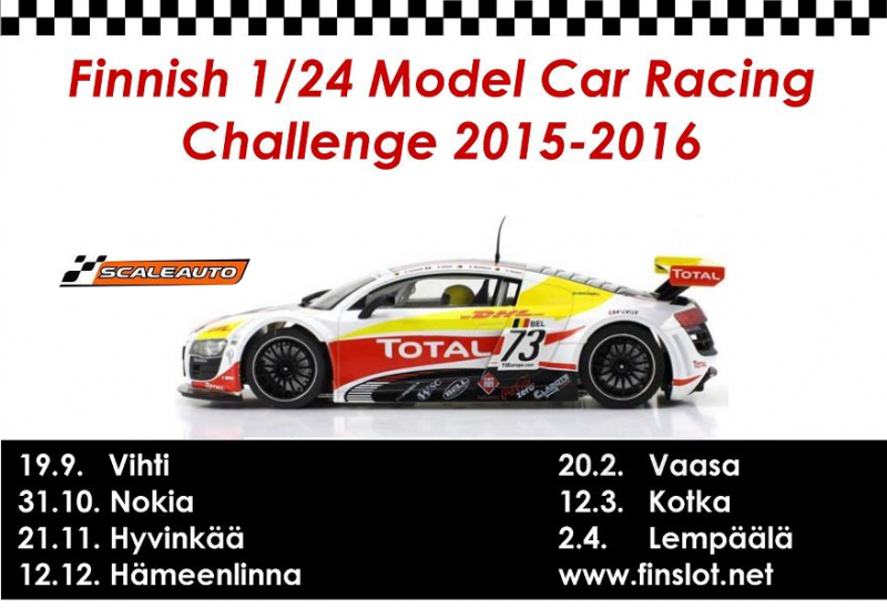 KILPAILUKUTSU JA ILMOITTAUTUMINEN 1/24 Finnish Model Car Racing Challenge 1/7, Scaleauto/GT, LMP ja FSC Vihti 19.9.2015.