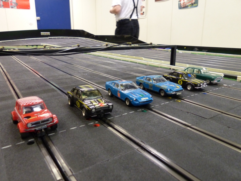 1/32 kotirataluokissa Scalextric oli jälleen valtamerkki. Itse asiassa Scalen osuus taisi olla nyt suurempi kuin aiemmissa vintage-kisoissa sillä lähes 3/4 kolmekakkosista kotirata-autoista edusti tätä merkkiä: