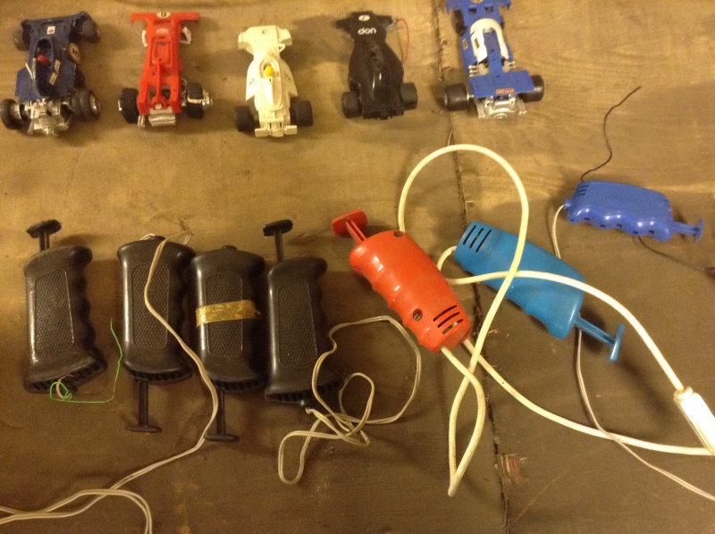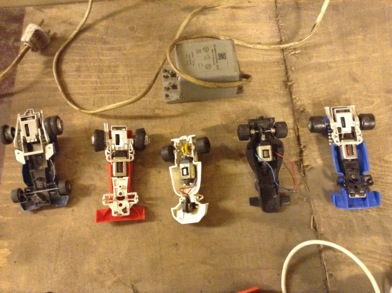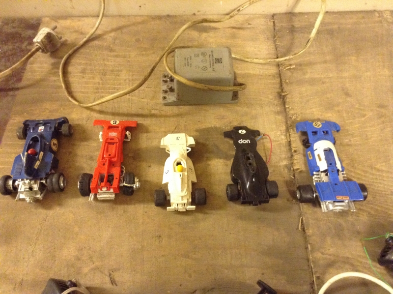 Autot taitavat olla Scalextricia ja kyllä niille tuossakin kunnossa ostaja löytyy. Minua voisi kiinnostaa tuon virtalähteen merkki ja tiedot.