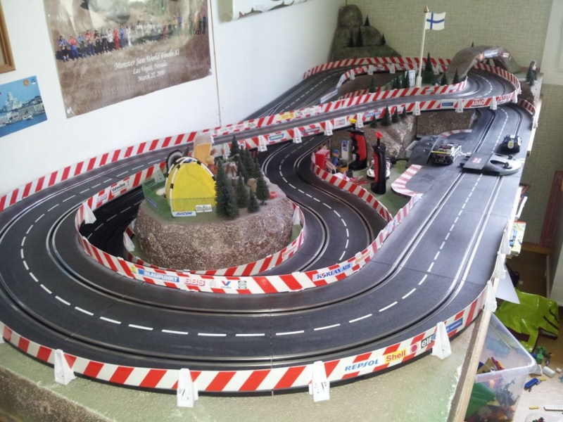 Hei.tälläinen lähtisi pika myyntinä nopeimmalle.150€ tai tarjouksia.Radan pituus tällä maisemoinnilla 10m molemmat urat.3 autoa laahaimia renkaita ja lisä ratapaloja.Nouto mielellään mahdollisimman pian.Rata on purettavissa kuljetuksen ajaksi ei tarvitse välttämättä tuota alustalevyä.