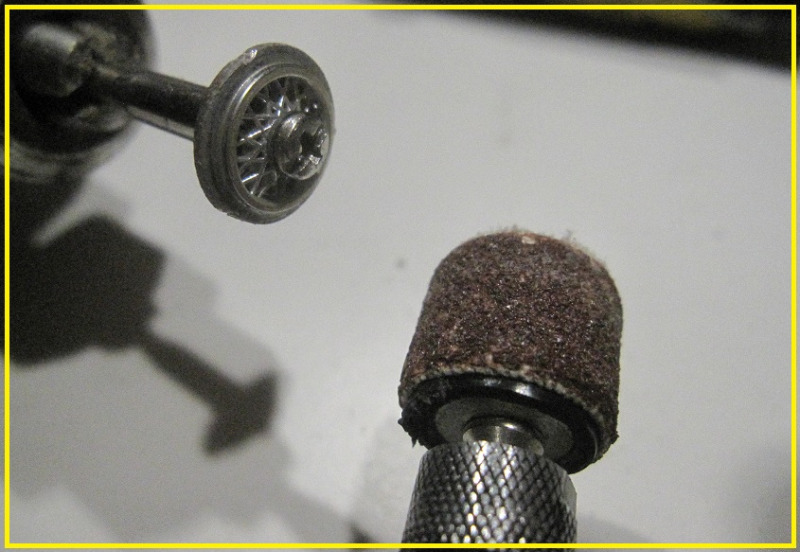 Oma Alpineni lienee hankittu jo ysärillä, eikä sillä oltu muistini mukaan ajettu vuosiin. Ja sillonkin ilmeisen vähän. Jossain vaiheessa olin istuttanut autoon hyvin matalat takaslicksit, jotka olivat täysin kovaksi kuivuneet. Joten uusien takarenkaiden teko oli edessä. PU-rengasvarastostani löytyi Exinin formulan renkaat , jotka sopivat Alpinen vanteille, mutta halkaisija oli melko suuri. Liimasin renkaat alkuperäisille vanteille ja sorvasin niistä millitolkulla pois jotta mahtuivat pyörimään pyöräkoteloissa.
