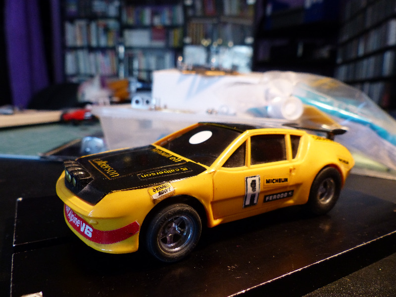GT-luokkaan löytyikin auto, joka ainakin omasta mielestäni on erittäin nätti. Kyseessä on Ranskan Scalextricin viimeisiä malleja. Tämän ( www.wikislot.com/slot-cars/scalextric-france ) lähteen mukaan Alpine Renault A310 V6 julkaistiin kataloginumerolla 090112 vuonna 1979. Kaiken kaikkiaan Meccanon valmistaman ja markkinoiman 'Ranskan Scalextricin' vaiheista tuntuu olevan varsin niukasti tietoa saatavilla. Varsinkin loppuvaiheet ja siirtyminen uuteen ratajärjestelmään 'Scalextric S' on ainakin mulle vähän hämärän peitossa.