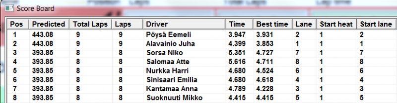 Tässä tapauksessa järjestelystä tuli kommentteja niin puolesta kuin vastaan kilpailun jo alettua. Osa kilpailijoista oli sitä mieltä, että haluavat mielummin nähdä normaalin kierrosnäytön, josta voi tarkkailla kierrosaikoja ajon aikana. Osa kilpailijoista halusi vastaavasti nähdä kokonaistilannenäytön. 1. heatin jälkeen pidin huutoäänestyksen asiasta ja molempien vaihtoehtojen puolesta annettiin noin 6-7 ääntä muiden ollessa ottamatta kantaa. Totesin, että jatketaan normaalilla tavalla, koska äänestystulos ei ainakaan selkeästi puoltanut äänekkään vähemmistön halua ottaa kokonaistilannenäyttö jatkuvasti näkyville. Loppujen lopuksi päädyin tulostamaan ilmoitustaululle kokonaistilanteen jokaisen ajetun heatin jälkeen. Uranvaihtojen aikana kokonaistilannenäyttö oli esillä, tosin Jampalle en tietenkään asiasta muistanut sanoa.