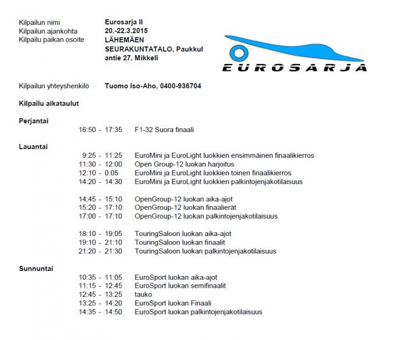 Eurosarja II-2015 Mikkeli TULOKSET ***