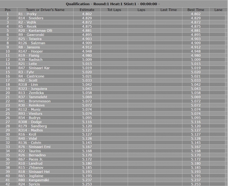 F1-32 finaali oli ehkä siistein ikinä kansainvälisellä tasolla vetämäni erä. Yli 5 mutta alle 10 stoppia koko 40minuutin ainana. Se olis myös hyvin mielenkiintoinen, kun käytännössä kuudella kuskilla oli saumta voittaa loppuun asti. Meidän homma tosiaan vähän kaatui punaiseen uraan, mutta ei oo häpiä olla finaalissa "vain" finaalissa kun mukana on noin 100 kuskia.