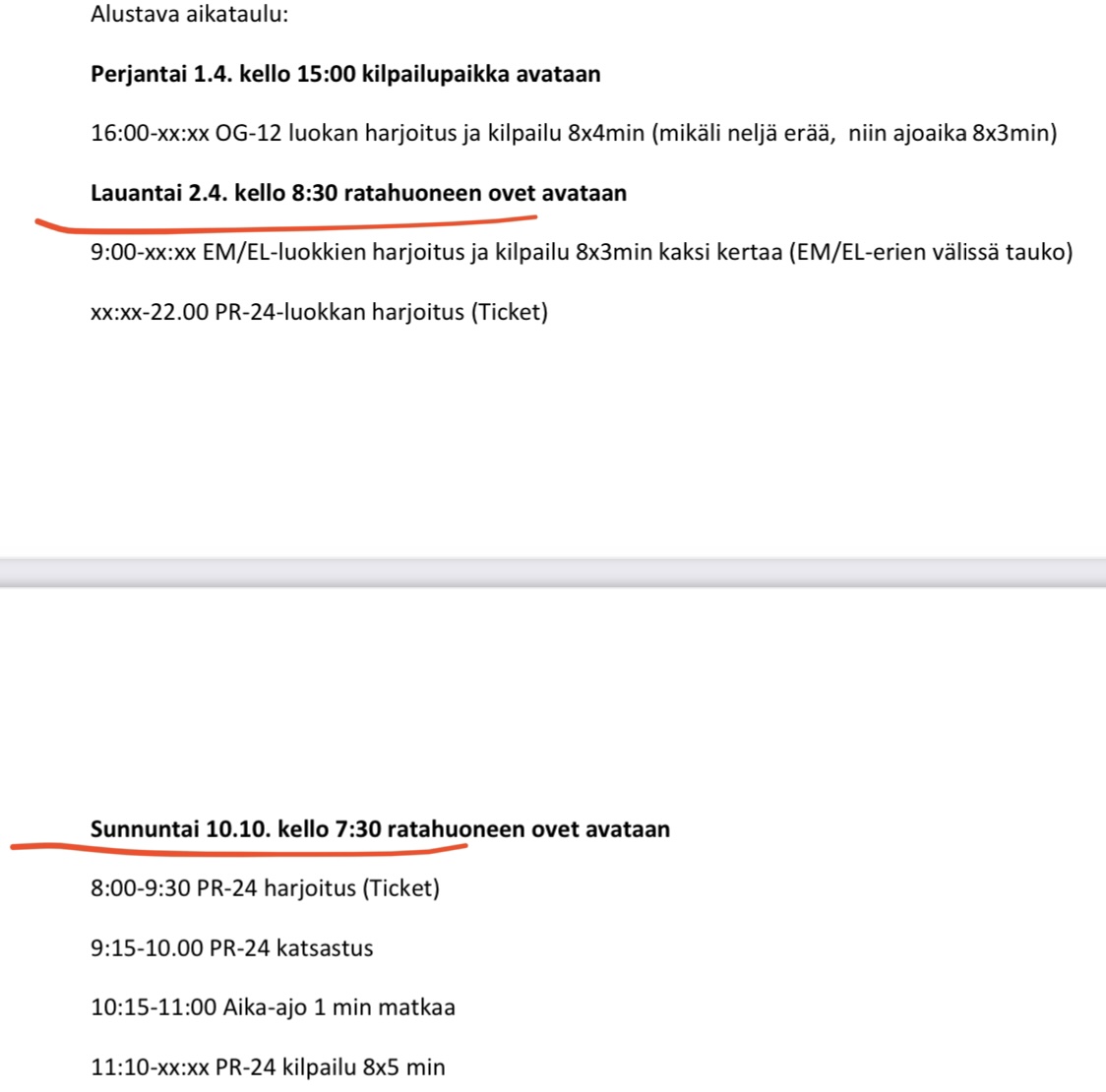 pyrtsy kirjoitti: Ohessa dokuja. Aikataulun mahdollistaessa EM/EL finaalikierrosten väliin on laitettu 30min+30min tauko josta ensimmäinen mekkaustauko. Lisätauosta voidaan vielä ajajakokouksessa neuvotella jos sitä ei haluta pitää.
