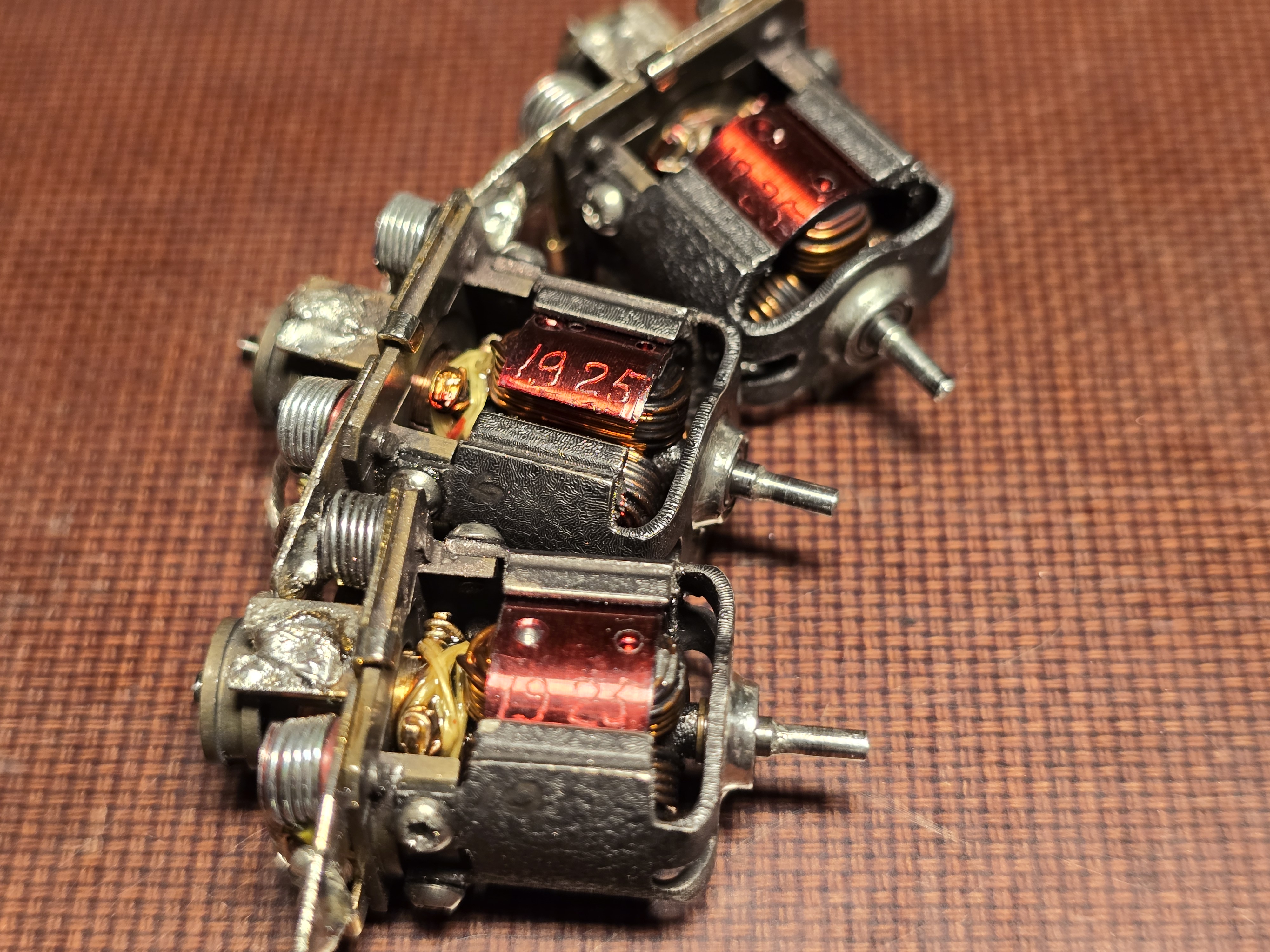 Myydään hyvin palvelleet Vokin 24MMS ES-24-moottorit, joissa on S&K:n 19/25 ankkurit, jotka Eemeli on tasapainottanut 1-2 kertaa. Kollektoria on reilusti jäljellä kaikissa ankkureissa. Kaikki laakerit tarkistettu ja/tai vaihdettu GRW:n laakereihin. Yhdessä setupissa magneeteissa pieni jälki, mutta se on ollut vuosia ja ei ole siitä suurentunut. Moottorien hintapyyntö 110€/kpl tai 300€ kaikki kolme. Tarvittaessa löytyy hyväkuntoiset S&K nitratut 5t 72p tai 6t 80p pinjonit 10€ lisähintaan.