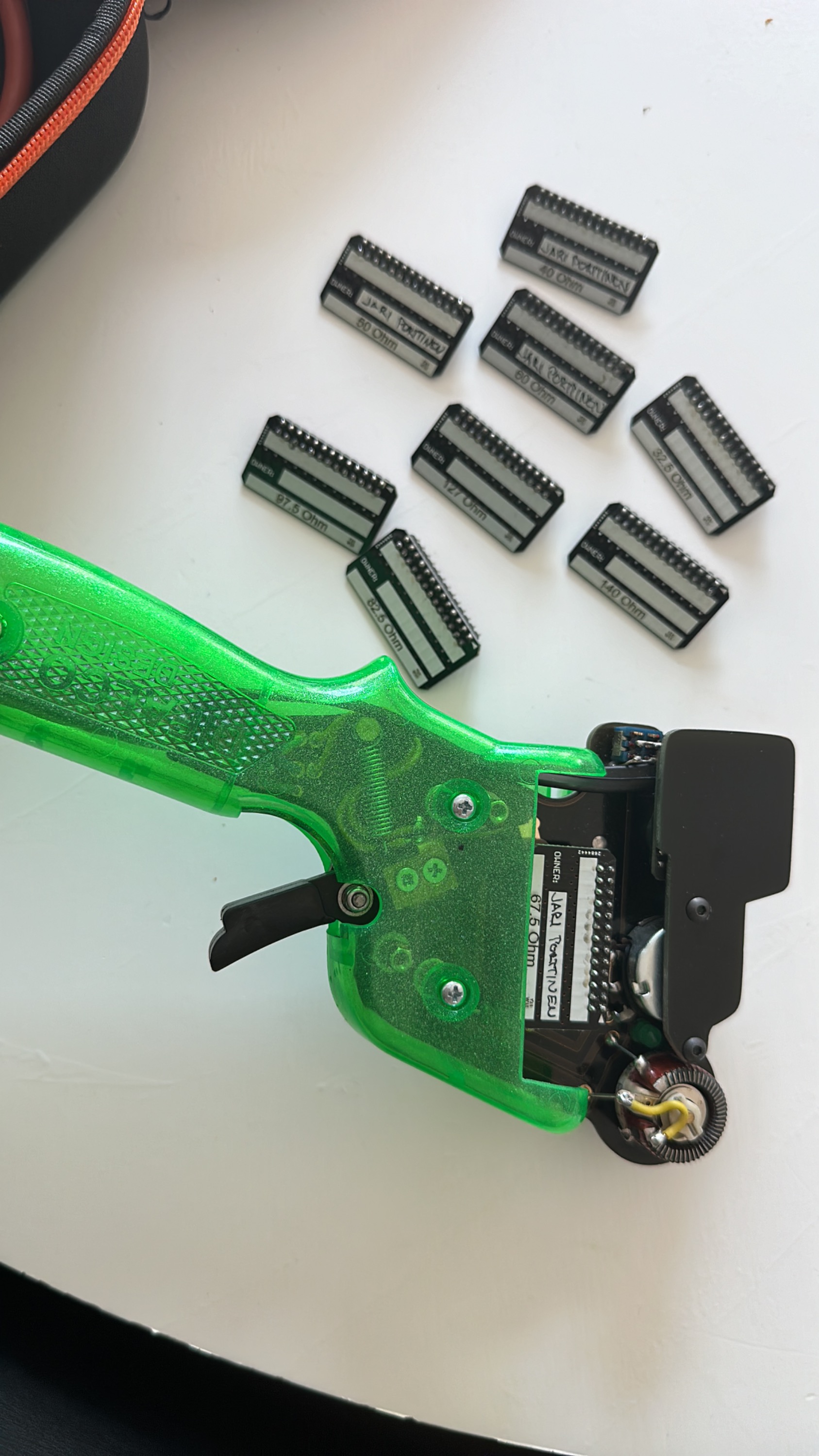 Mukana säätövastukset 9kpl ja kuljetuslaukku.