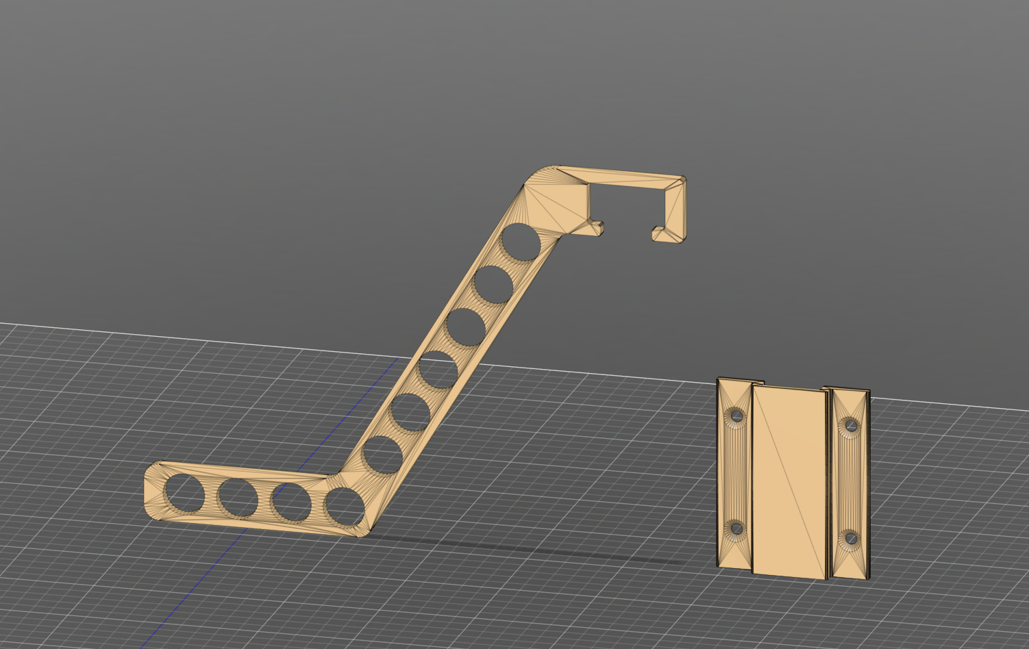 3D-tulostin tuli myös tähän projektiin mukaan. Mallinsin telineen öljypullolle sekä kolvin apuvälineille. Nämä oli hyvin yksinkertaiset vermeet. Sitten sain paremman idean. Teline ankkurituubeille. Mallinsin tuollaisen telineen kolmelle tuubille. Purkit menevät ylhäältä vinosti painamalla ja lukittuvat paikoilleen telineen puristaessa purkkia.
