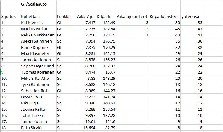 Oli kyllä hyvät kapinat! Kiitokset järjestäjille ja kisakumppaneille. Taisi olla pitkästä aikaa osanottajamäärältään suurin Suomessa järjestetty malliautokilpailu. Tästä on hyvä jatkaa.seuraavaan kisaan Hyvinkäälle.