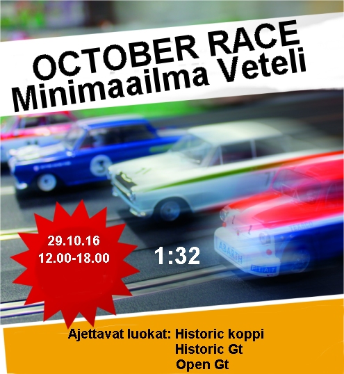 Kolmatta kertaa järjestettävä 1:32 autojen October Race ajetaan