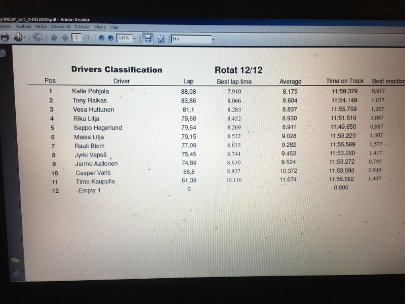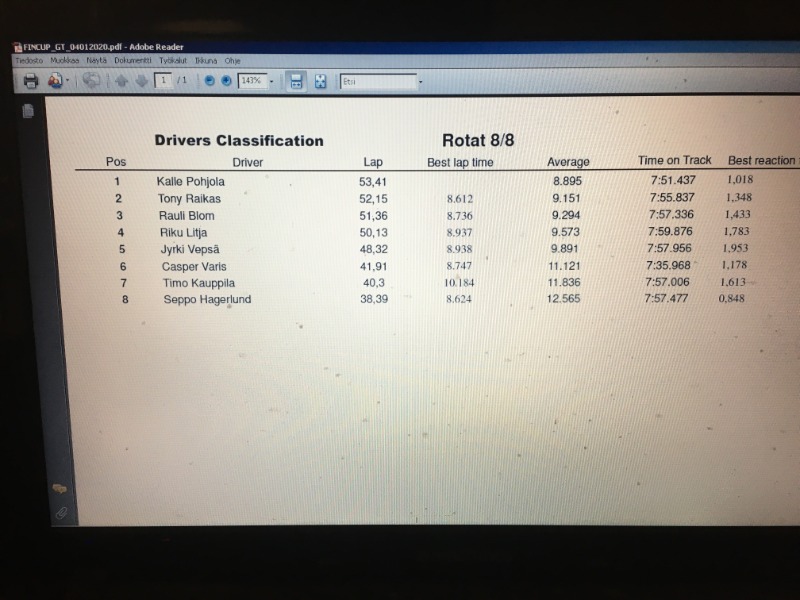 Mukavat kisat oli tänään! 11 kuljettajaa oli odotettua enemmän, ajettiinhan tänään vasta harjoituskisat ensi lauantain Fincup-kisaa ajatellen.