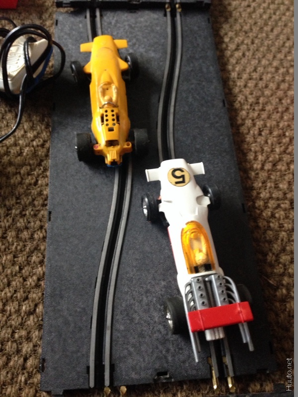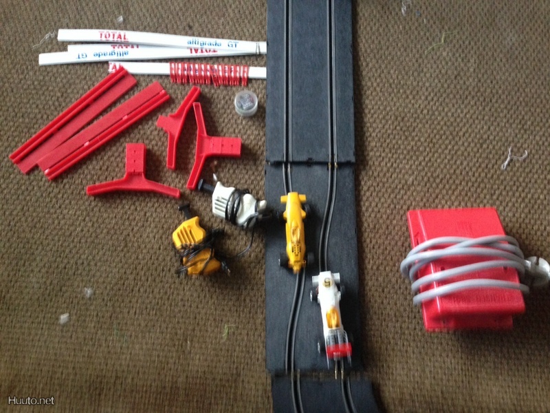 kaikki osat pitäisi olla ajamista varten. Osa radasta on "ovaalia" ja sitä varten on tuet sekä mutkiin mainoksia sekä aitaa. Pienessä rasiassa mukana radan lukitusklipsejä mutta osa niistä on rikki. Joitan kohtia radan johteista pitää suoristaa pihdeillä
