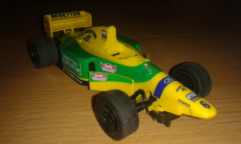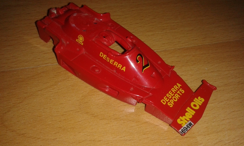 Scalextric formula, kuski puuttuu ja etusiipi ainakin. Ei muutenkaan täydellinen. 8€