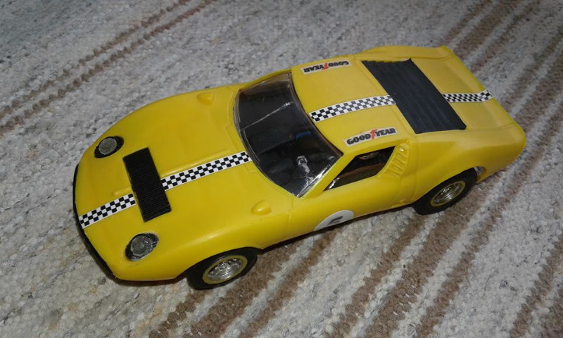 Siisti Scalextric Miura 70-luvulta. Uudet takarenkaat. Vain tuulilasi on halki oikealta.