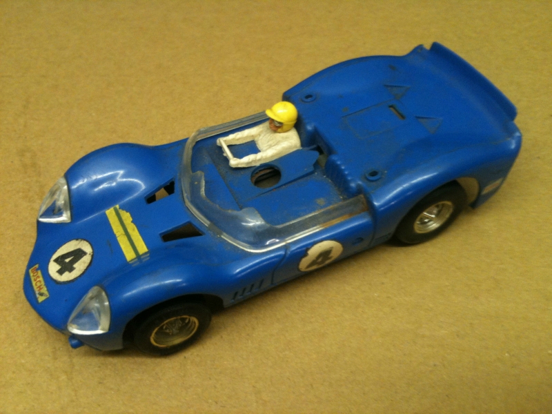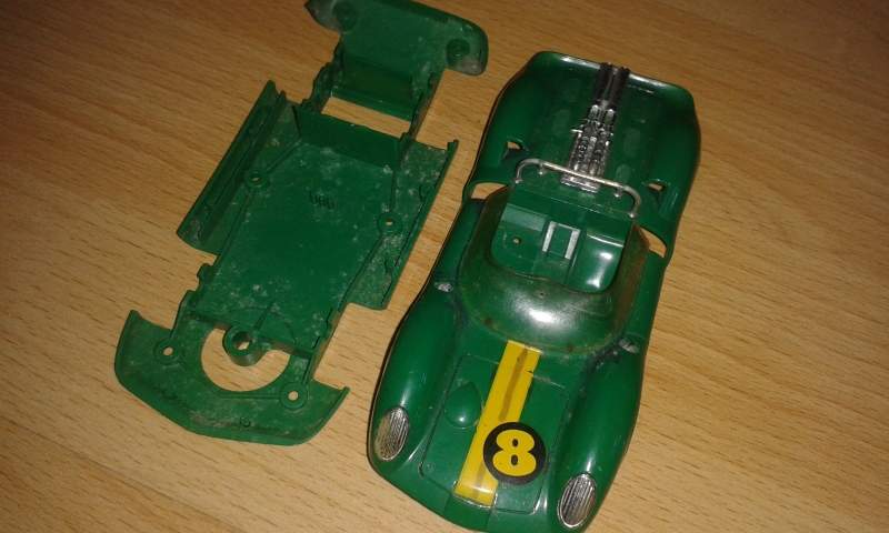 - joku on vaihtanut autoon uudemman lautaspyörän, jonka hahlo on liian kapea RX-moottorin akselille. RX-mosan akselin on 3/32" (2,38 mm). Johnson kannumoottoreissa akseli on 2 mm. Scalextric modasi lautaspyöriä jossain vaiheessa paremmin 2 mm akselille sopivaksi.