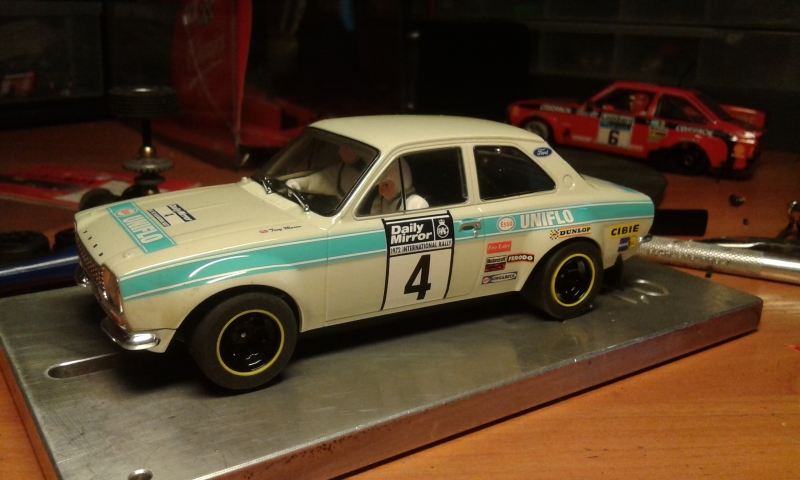 Mk 2 Escort on SXC valmiste ja siinä on Scalextricin Mk 1 Escortin vanteet (jotka ovat hieman alkuperäistä isommat) ja Lordmanin renkaat takana. Renkaita on sorvattu sen verran että ne mahtuvat luokasuojan kaarien alle ja tuovat raideleveyttä lisää. Taka-akseli ja kruunuratas tässäkin vaihdettu. Keinuva moottorikehto on liimattu kiinni mahdollisimman alas koska pohjassa oleva pahka syö maavaraa joka tapauksessa. Liimaaminen alas auttoi myös takarenkaita lokasuojien sisään miettiessä.