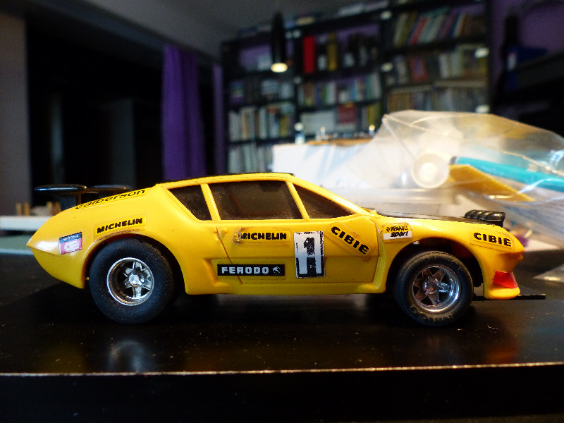 GT-luokkaan löytyikin auto, joka ainakin omasta mielestäni on erittäin nätti. Kyseessä on Ranskan Scalextricin viimeisiä malleja. Tämän ( www.wikislot.com/slot-cars/scalextric-france ) lähteen mukaan Alpine Renault A310 V6 julkaistiin kataloginumerolla 090112 vuonna 1979. Kaiken kaikkiaan Meccanon valmistaman ja markkinoiman 'Ranskan Scalextricin' vaiheista tuntuu olevan varsin niukasti tietoa saatavilla. Varsinkin loppuvaiheet ja siirtyminen uuteen ratajärjestelmään 'Scalextric S' on ainakin mulle vähän hämärän peitossa.