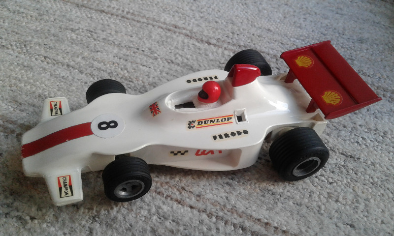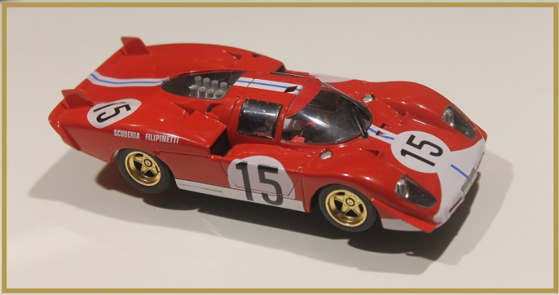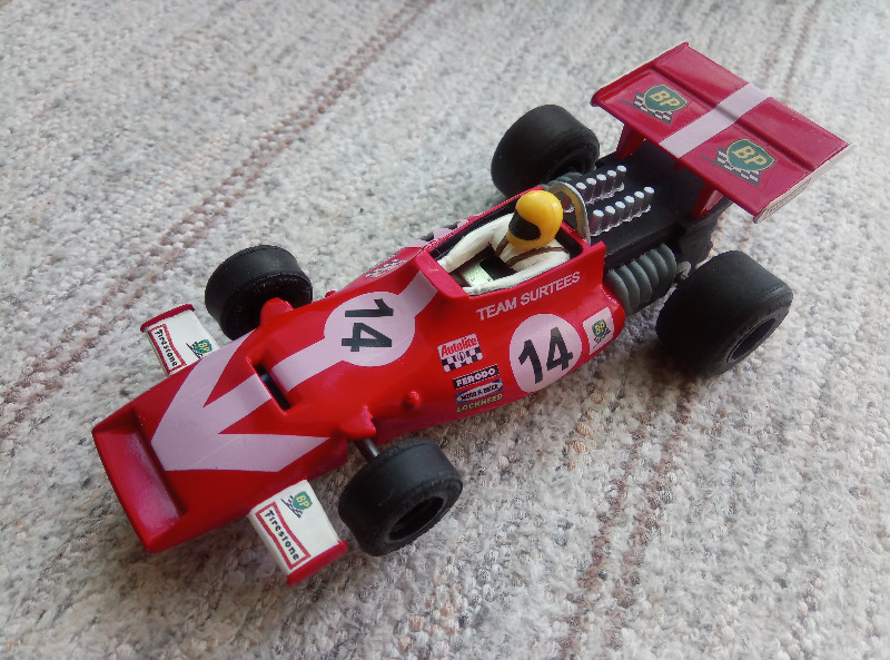 Kolhuja itseensä kerännyt auto nökötti laatikossa ilman tekniikkaa, joten otin sen iltavirikkeeksi. Autosta rapsuteltiin edellisen elämän jättämiä liimajälkiä pois ja asensin siihen alkuperäistä vastaavan moottorin, alkuperäiset renkaat ja magneetinkin. Uusilla virtajohdoilla ja Nincon breideillä Ferrari alkoi käydä ja kukkua. Erilliskiinnitetyt etupyörät asensin takaisin yhtenäiseen akseliin tuettuna.