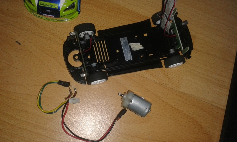Puuttuva 11 -hampainen vakiokokoinen moottoriratas työnnetään paikalleen akselin päässä näkyvään rihlaukseen. Ohjuri kuuluu keulassa olevaan reikään ja se asettuu paikalleen pienen ruuvin avulla. Jos osat eivät ole tallessa niin ehdottomasti parasta ja nopeinta apua saat ongelmaan Järvenpään kerhoradalla!!!