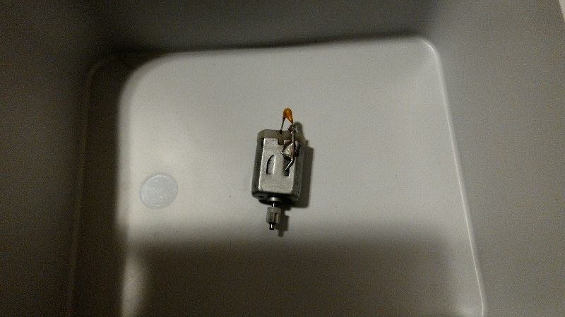 Mitään malli tai merkkitietoja moottorin kyljessä ei ollut. Eilen kun koitin moottorista jotain tietoja etsiä, niin moottori irtosi johdoistaan, jonka jälkeen päätin testata moottorin toimintaa hyppyjohtojen avulla. Irtojohdot moottorin napoihin kiinni, johdot radan kiskoihin kiinni ja ohjaimesta virtaa-> moottori tuntui pyörivän ihan hyvin.