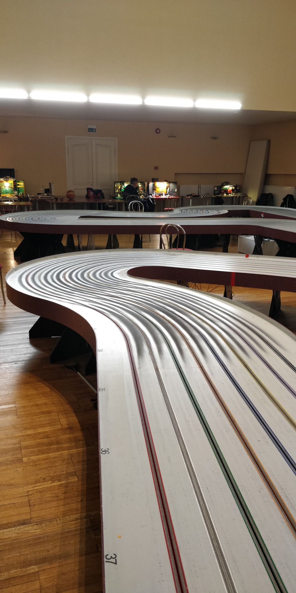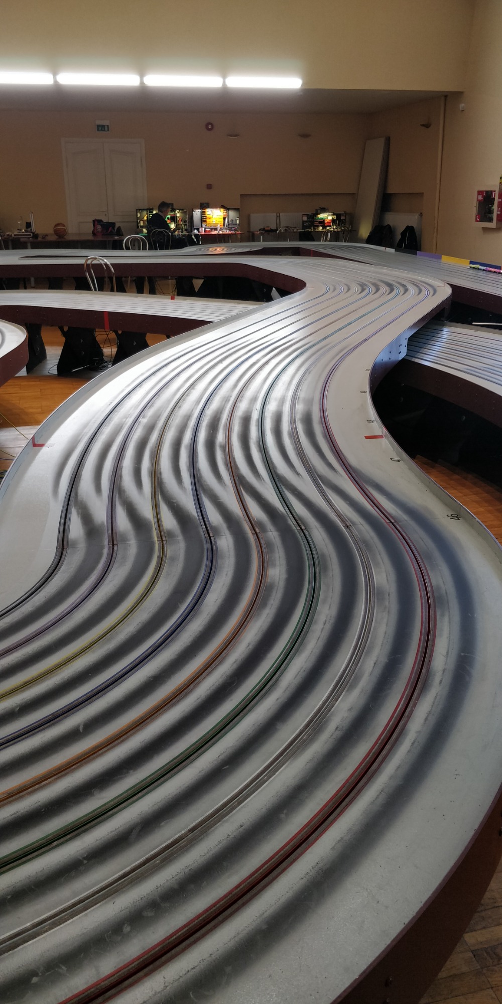 Ratahuoneessa oli päivän aikana 12-16°C lämmintä eli saman verran kuin ulkonakin. (Lämmitys ei ollut päällä, ja kesällä tuskin on ilmastointiakaan.) Rata on vaalea, joten hyvin vaalea kori ei välttämättä ole tälle radalle paras vaihtoehto. Ratahuoneen iltavalaistuksessa oli vähän toivomisen varaa, mikä varmaan vaikutti tuohon auton näkyvyyteen.