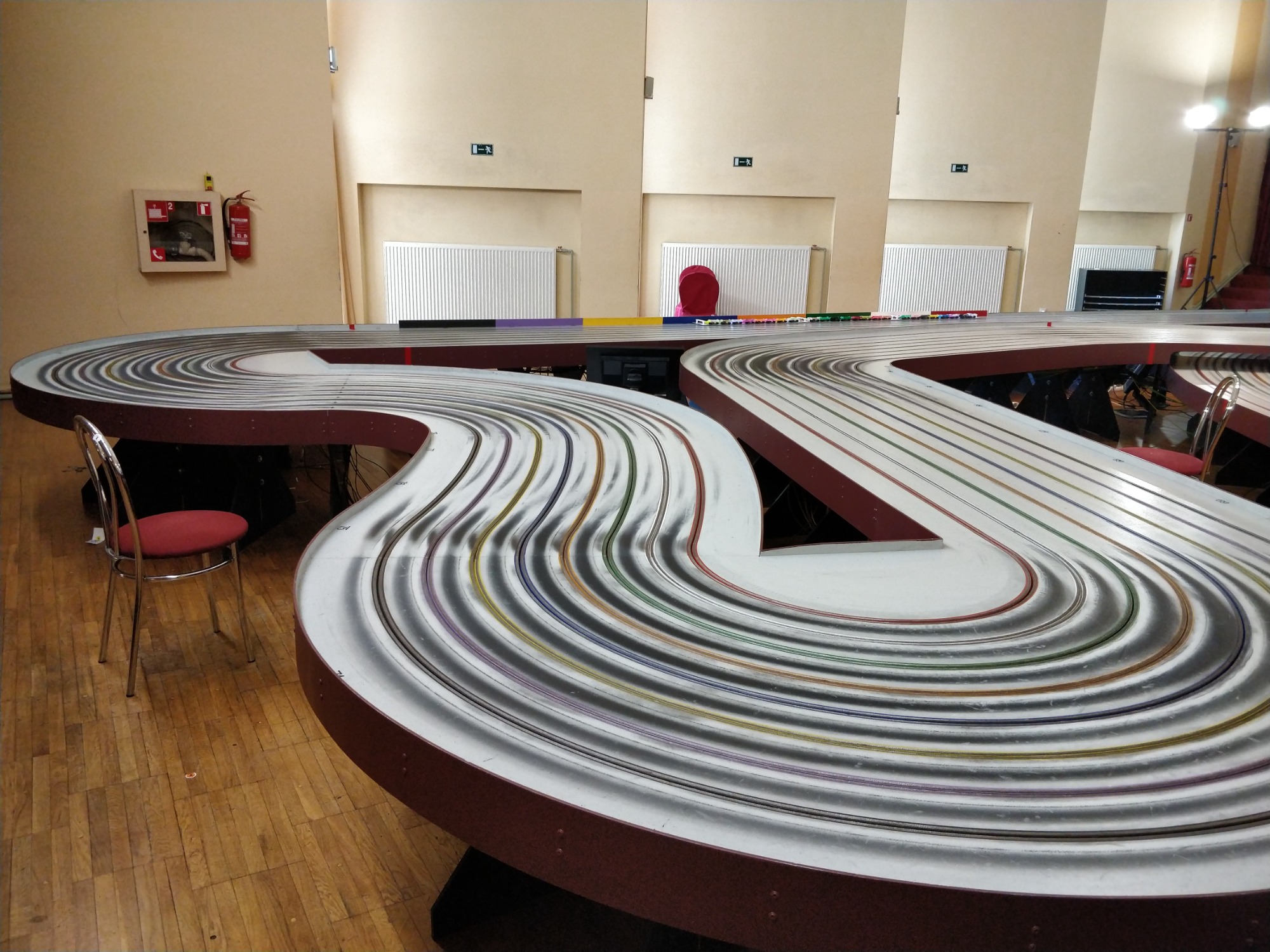 -rata on juhlasalissa, näihin ~30kisaajaa/luokka kisoihin kaikki mahtuivat hyvin samaan saliin mekkaamaan