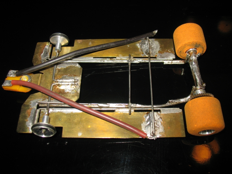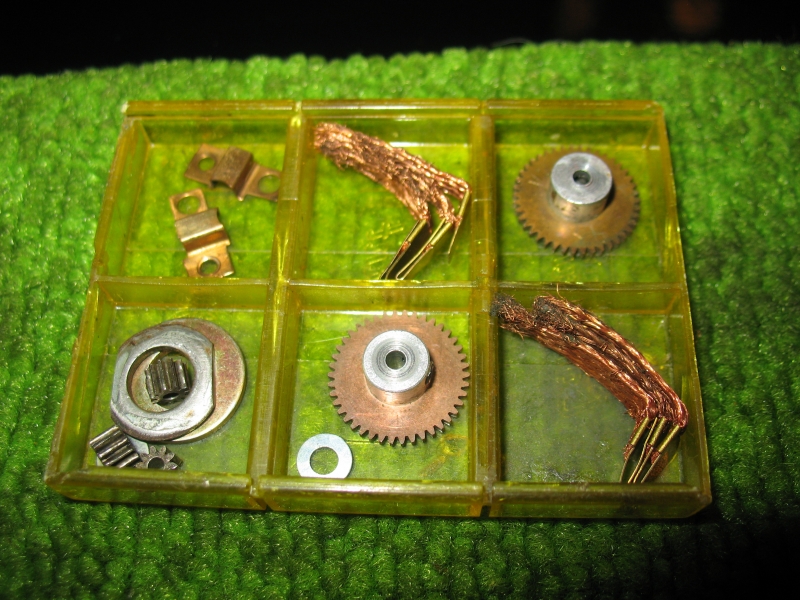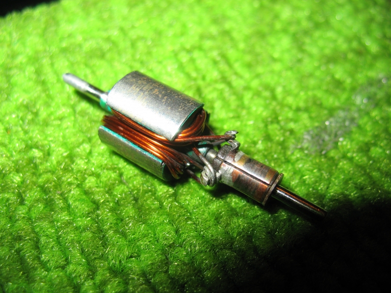 Miltäs laitteet tänään näyttävät? Ankkuri kai paloi, ja sen olen jo silloin muinoin kääminyt uudestaan ilman mitään käsitystä johtojen oikeasta kulusta ja paksuuksista. Eikä niitä ole tinattu kiinni kollektorin nastoihin, muistaakseni moottori ei käynyt näin korjattuna yhtään. Renkaat on kovat kuin mitkä, lähes kopisevat kun niitä yhteen kopistaa. Runko on ajokunnossa, mutta epäsiisti. Useimmat saumat on tullut tinattua uusiksi aivan tekemisen ilosta, ja näin on tullut pilattua siistit alkuperäiset saumat.
